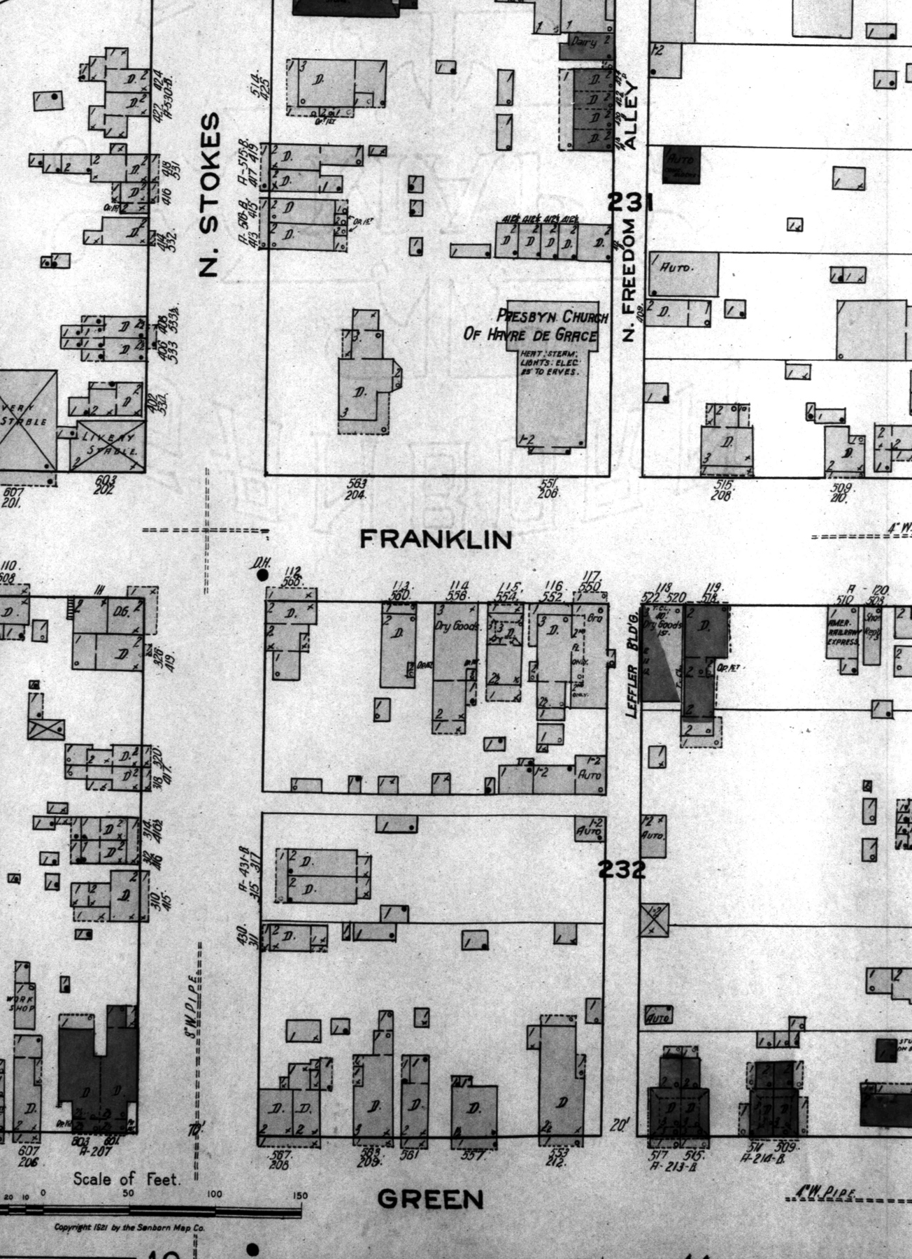 State Properties, Inc. sold this corner lot in 1931 to Horace L. Churchman (1898-1948) and his wife, Dorothy (1901-1984), and Horace’s sister, Esther Churchman (1884-1962). The Churchmans may have modified the building with a corner entrance to facilitate Esther Churchman’s desire to create a women’s dress shop on the ground floor. She may have rented out the second floor but she did not live in it. Horace and Dorothy Churchman had owned and lived in a house at 307 South Washington Street since 1922 and according to the 1940 Census, Esther lived with them and their two children. Presumably the dress shop materialized for some time but was then closed by Esther.