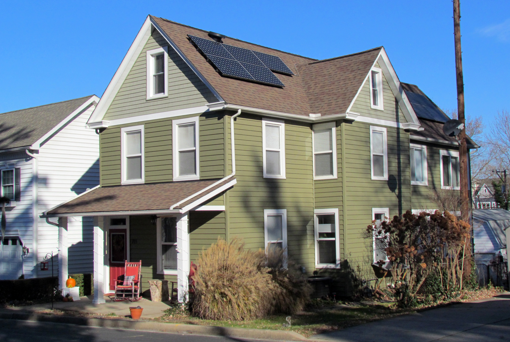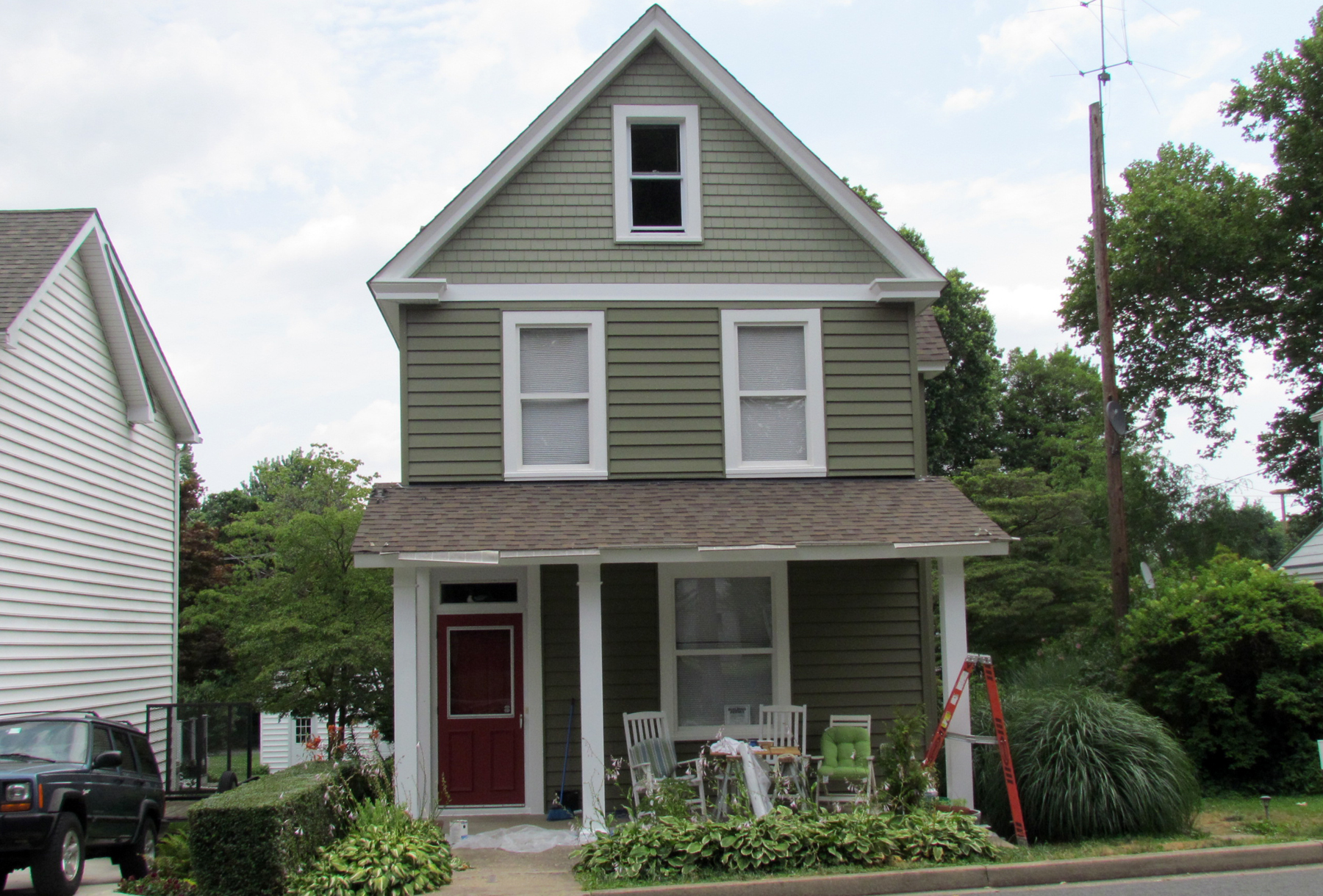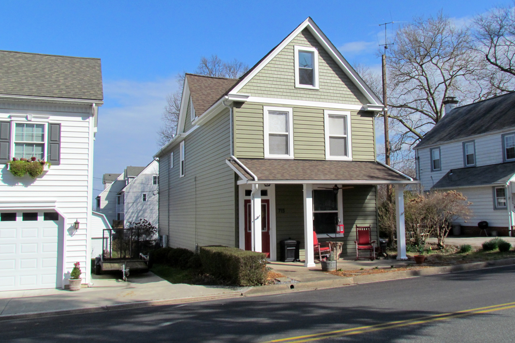 Although this home was previously thought to have been built by the Dye family around 1884 when they moved to Harford County, an examination of deeds indicates that it was more likely built later. The land on which it was built was owned by Margaret Tweedle who died in August 1900 and bequeathed it to her heirs. The latter sold the land (for $100) in February 1903 to Sylvester E. Penning (1840-1929) who was an attorney for the City Building and Loan Association. Sylvester and his wife (Alice) sold the land the following year (for $135) to D. Craig Jones (1881-1907).