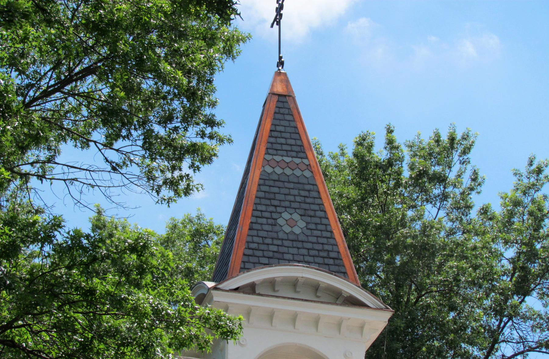 St. John’s Episcopal Church is known to have been one of the first churches to eliminate the “slave balcony” for worship and has been a safe haven for all since the early 1800s. It also is one of the oldest surviving structures in the city, despite being hit by lightening and burned in 1832. Only the four walls, which were 18 inches thick, remained standing. After being rebuilt in 1833, the church auctioned off pews to raise money for the rector’s salary (Rev. Edward Young Higbee was appointed in 1829.) Abraham Jarrett Thomas (of 501 St. John Street) was the first to buy a pew. During a shortage of funding in the late 1800s, Clarence C. Pusey (1864-1922) and his wife, Mattie Parker Pusey (1868-1941), donated half of the pews to St. John’s; a three-paneled stained glass window over the altar was given in memory of Washington P. Chew and Mary H. Chew; two memorial tablets, one in memory of John William O’Neill (1845-1931, and grandson of John O’Neill) and the other in memory of Eliza Jane Leattour O’Neill; and an unusual litany desk supported by two finely carved angels was given in memory of Robert Rodgers. Other loyal and generous parishioners included Murray Vandiver (1845-1916) and his wife Annie. A Sunday School building was added in 1888.