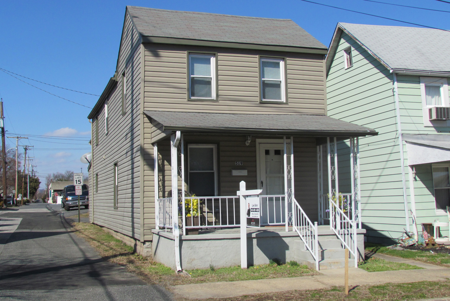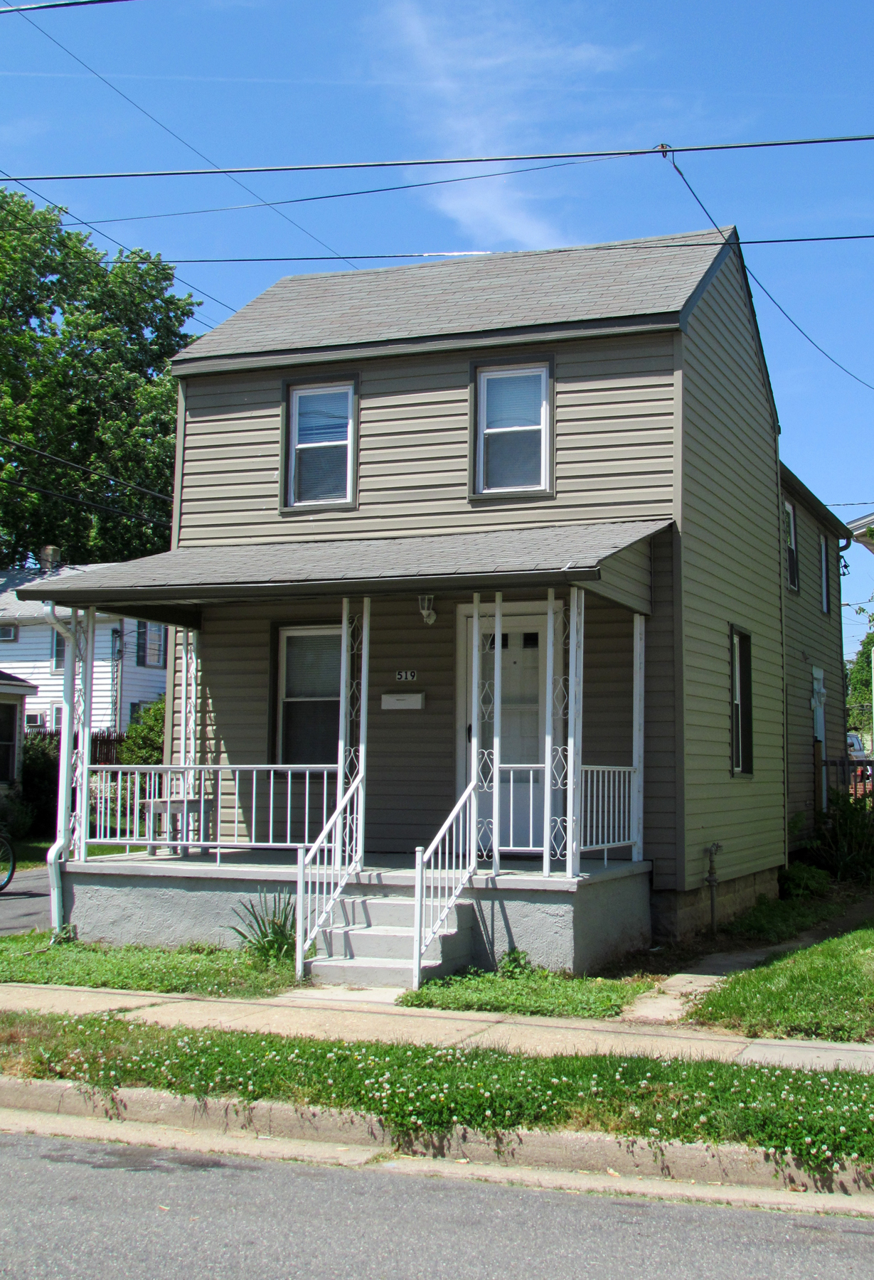 When this home on the northeast corner of Alliance Street and Freedom Lane was originally built, the property included all of Lot 228 in Square 240 of Hopper’s Map of Havre de Grace. It appears that around 1932 the family of Julia Ann Moses divided the property and sold that part of the lot on which 517 Alliance Street was subsequently built just east of this. After the death of Julia Ann Moses, these two homes passed down to her two daughters, Ione Shirley and Eva Durban and their families in 1932. About 10 years later, this home was sold to Hannah J. Hoke who subsequently married and became Hannah Turner; the home remained in the Turner family until 1964.