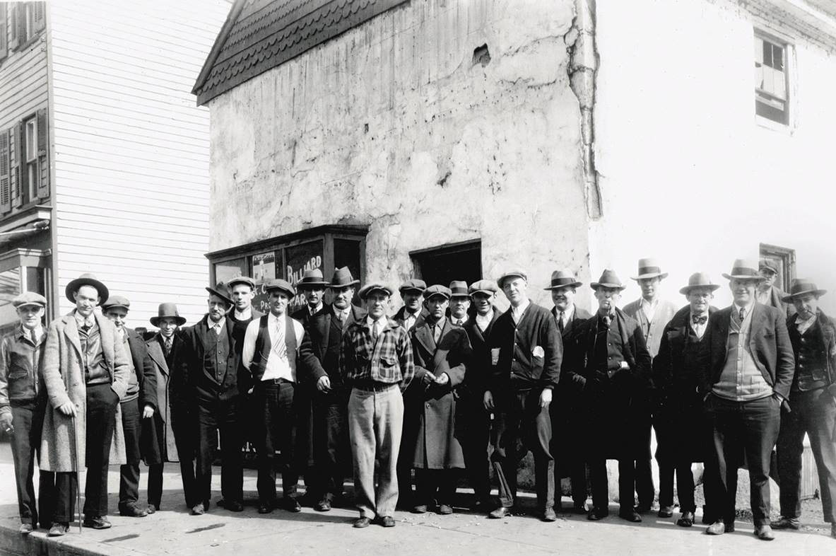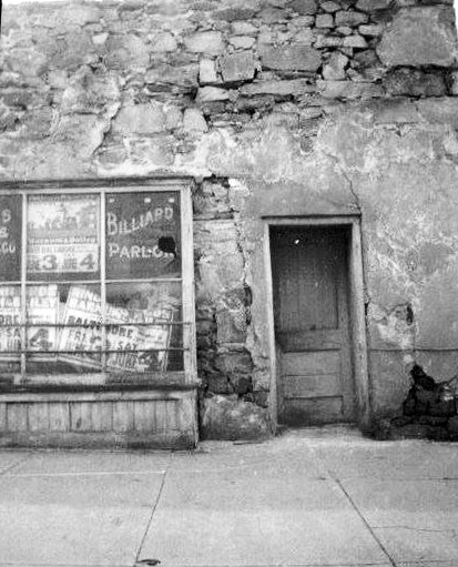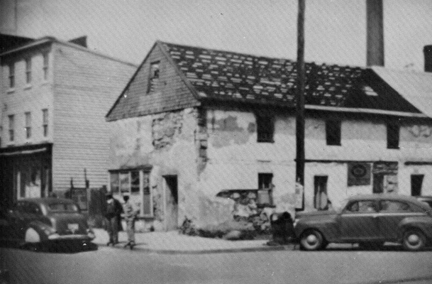 In February 1890, Harry W. Cooling opened his first barbershop on this northeast corner at Pennington Avenue alongside a pool hall (he moved to the Odd Fellows Building in 1913). A 1916 telephone directory lists this address as the business of Arthur Cloak, who operated a pool parlor and sold cigars. The White Chapel Pool Hall was also located here and appears on the 1921 Sanborn Map. A photo shows a group of men standing outside the White Chapel Pool Hall in the early 1940s and others show the deterioration of the pool hall. Reportedly, the tote boards from the White Chapel were stored in a shed of Jake Hecht’s behind Tawney’s Garage on North Adams Street (Tawney’s garage and The Hecht Hotel were adjoining properties at Green and North Adams Streets).