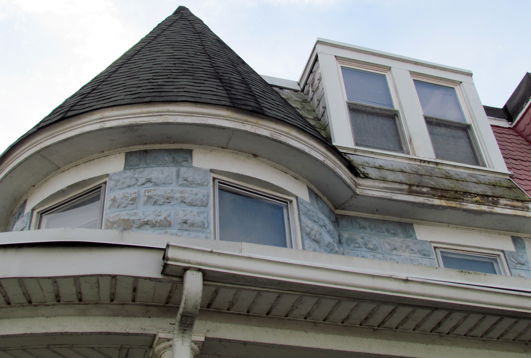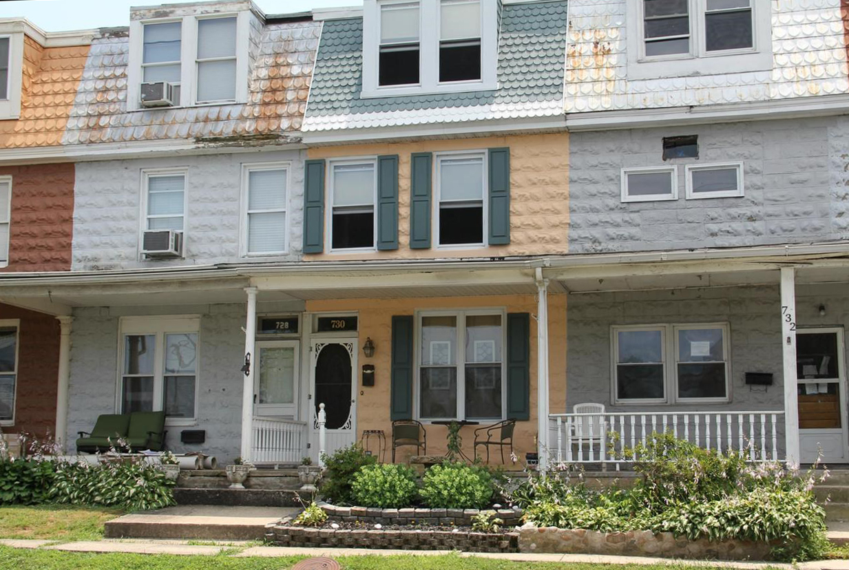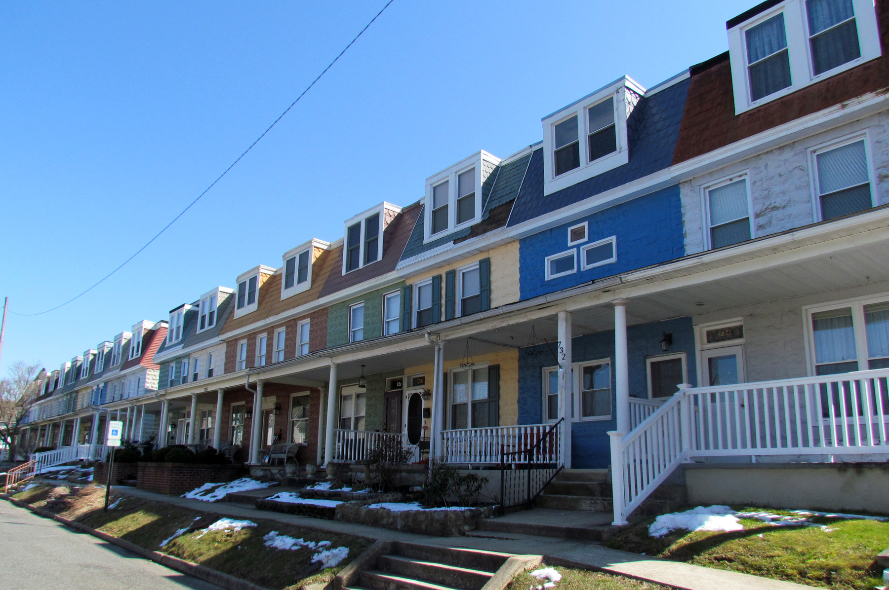 Known by locals as “Burns Row” and built in 1907 by the Burns Brothers this is a row of 16 almost identical 1,200-square-foot townhouses on the south side of Green Street between Adams and Juniata Streets. The five brothers also built the Burns Brothers Carriage Factory in the 1890s and other buildings in the first decade of the 20th century. The buildings were framed using a method known as balloon framing, which means there are no interior bearing walls, all the bearing weight is on the exterior walls. The exterior is a textured concrete block manufactured in Havre de Grace. The plant that produced the blocks closed in 1913. The Burns brothers built several such formstone houses during this time period.